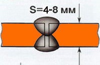 | Листи діаметром від 4 до 8 мм зварюють двостороннім швом. | ![]() |